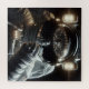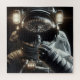 Realistisches Foto wie ai Art, das einen Astronauten in einem Raumschiff darstellt, mit einem Spiegelbild eines UFO und einem anderen Astronauten in seinem Helm.