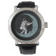 Uhr, Klassische Damenuhr mit schwarzen Lederarmband