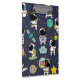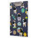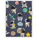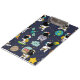 Eine Grafik des Astronauten-Cliparts, Outer Space: Astronaut, der Ballon als Planet hält, eine Rakete, Sterne, UFO-Symbol, Raumsatellitensymbol, Saturn Planet, Raumschiff und andere. Auf Oxford Blue (marineblau) Hintergrund.