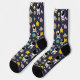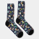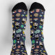 Eine Grafik des Astronauten-Cliparts, Outer Space: Astronaut, der Ballon als Planet hält, eine Rakete, Sterne, UFO-Symbol, Raumsatellitensymbol, Saturn Planet, Raumschiff und andere. Auf Oxford Blue (marineblau) Hintergrund.