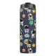 Eine Grafik des Astronauten-Cliparts, Outer Space: Astronaut, der Ballon als Planet hält, eine Rakete, Sterne, UFO-Symbol, Raumsatellitensymbol, Saturn Planet, Raumschiff und andere. Auf Oxford Blue (marineblau) Hintergrund.