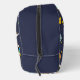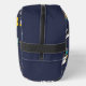 Eine Grafik des Astronauten-Cliparts, Outer Space: Astronaut, der Ballon als Planet hält, eine Rakete, Sterne, UFO-Symbol, Raumsatellitensymbol, Saturn Planet, Raumschiff und andere. Auf Oxford Blue (marineblau) Hintergrund.