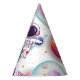 Featuring a cute astronaut floating among colorful planets, stars, and a magical galaxy background, these party hats are perfect for creating an exciting outer space themed birthday party for your little explorer.