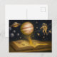 Astronaut schwimmt aus kosmischem Geschichtenbuch Feiertagspostkarte