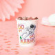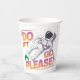 Eine lebendige digitale Illustration mit einem Astronauten, der im Weltraum schwebt und scheinbar wegdriftet. Begleitet wird die Szene von einem hellorangefarbenen futuristischen Textfeld, in dem steht: "DO N’T GO, BITTE!" mit einem kleinen grünen Frosch, der eine humorvolle und unerwartete Touch hinzufügt. Der Kontrast zwischen den Raumelementen und der spielerischen Botschaft schafft ein faszinierendes und mutiges Design.