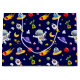 Ein lebendiges Raumthema mit Astronauten, Außerirdischen im Weltraum, Asteroiden und verschiedenen Raumobjekten.