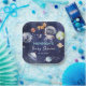 Lassen Sie diese Galaxie-Planeten-Kinder Babydusche Party-Papier-Teller für die Weltraum-Thema Geburtstagsparty Ihres Kindes. Illustration von Aquarellplaneten und Raketen. Der Text unter ihnen sagt "Hannahs Babydusche". Fügen Sie hier den Namen Ihrer Kinder hinzu, um das Design anzupassen.