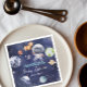 Lassen Sie diese Galaxie-Planeten-Kinder Babyduschen-Party-Servietten für die Geburtstagsparty Ihres Kindes zum Thema Weltraum. Illustration von Aquarellplaneten und Raketen. Der Text unter ihnen sagt "Hannahs Babydusche". Fügen Sie hier den Namen Ihrer Kinder hinzu, um das Design anzupassen.
