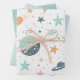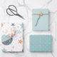 Coordinated wrapping paper set features an intergalactic space sheet, a solid pale green sheet and a darker green with white polka dots sheet that both coordinate with the space one. You can use them individually a create a stack of gifts using all three. They match the entire Astronaut Teddy Bear in Space Baby Shower Collection, so be sure to browse through the entire collection.