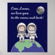 Poster mit 2 Elternastronauten in gedämpften Farben, für das heutige Kinderzimmer. Liebe (Name) wir Liebe Sie zum Mond und zurück.