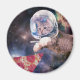 Astronautenkatze, die eine Pizzasuppe jagt Magnet