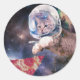 Astronautenkatze, die eine Pizzasuppe jagt Runder Aufkleber