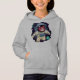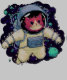 Eine Katze, die in einem Raumanzug verkleidet ist, schwappt durch eine farbenfrohe Galaxie, die mit kleinen Planeten und Sternen gefüllt ist. Sein eigenartiger Ausdruck suggeriert eine skurrile Reise durch den Weltraum.