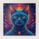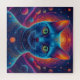 Ein schönes Portrait einer Katze, die Sie direkt aus dem All anschaut. Ein Reisender mit starken Farben und Planeten hinter sich. Eine Galaxie weit weg von den Sternen und der Milchstraße. Ein tolles und helles Puzzle für Spaß und Spaß.