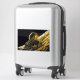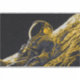 Eine digitale Illustration einer Astronautin in einem duotonischen Kunststil von Blau und Gold.