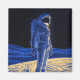 Eine digitale Illustration einer Astronautin in einem duotonischen Kunststil von Blau und Gold.