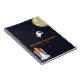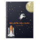 Niedlicher Weltraum Cartoon Astronaut & Space Shuttle auf dem Weg zum Mond in einem goldenen Imitat Glitzer starren schwarzen Kosmos. Schriftart-Typografie im Weltraumzeitalter kann leicht mit dem eigenen Namen und der eigenen Telefonnummer Ihres Kindes personalisiert werden. Eine super coole Schule oder ein at-Zuhause Notebook für jeden angehenden Erforscher der Geheimnisse der Galaxie.