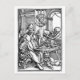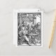 Astronomin Postkarten. Alte Schwarz-Weiß-Holzschnitt-Abbildung eines Astronomen an einem Tisch mit Skelett, das den Schädel auf einer Seite hält.
