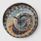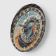 Schwarz-Orange-Fotografie, detaillierte Farbfotografie einer historischen, mittelalterlichen Sehenswürdigkeit, eine alte astronomische Uhr in prague in Europa mit blauen, orangen, braunen, astrologischen Zeichen und römischen Ziffern. Fotografie in Schwarz Blues und Orangen.