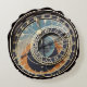 Fotografie in Schwarz, Blau und Orange einer mittelalterlichen Sehenswürdigkeit einer alten astronomischen Uhr in prague in Europa mit Astrologen und römischen Ziffern.