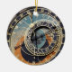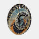 Fotografie in schwarzem Blauem und orange. ausführliche Farbphotographie einer historischen, mittelalterlichen Sehenswürdigkeit, eine alte astronomische Uhr in Prag in Europa mit den Blauen, Orange und Braunen, Astrologiezeichen und den römischen Ziffern. Fotografie in den Schwarz-Blues und -orangen.
