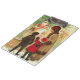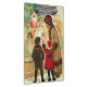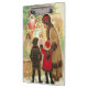 Vintage illustration of a mother with children watching a toy store window, filled with dolls and toys for Christmas.