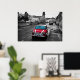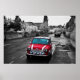 Dies ist ein atemberaubendes Foto eines roten Mini mit schwarz-weißem Hintergrund