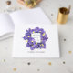Schönes und atemberaubendes Aquarell lila Irische Hochzeitsblumenrahmen. Elegante lila und gelbe Iris-Blume Hochzeitskunst. Persönlich gestalten, indem Sie die Details ändern.