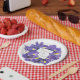 Atemberaubende Lila Irisfarben-Blumenhochzeit Pappteller