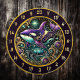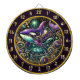 Umgestalten Sie Ihre menschliche Höhle oder Angellodge mit diesem außergewöhnlichen Dart-Motiv. Das Herzstück präsentiert einen majestätischen Orca, dessen Körper in lila, goldfarbenen und lebendigen Blautönen schimmert und das Flair des Buntglases wiederspiegelt. Eine hübsch daneben schwimmende Schildkröte verleiht dem Wasserthema einen besonderen Charme. Die gesamte Szene wird durch einen atemberaubenden, kreisförmigen Rahmen gerahmt, der mit goldenen Schnörkeln, leuchtenden grünen Edelsteinen und himmlischen Akzenten geschmückt ist und ihm ein ätherisches Unterwasservibe verleiht. Dieses Kunstwerk verbindet rustikalen Charme mit Fantasie und macht es zu einer perfekten Ergänzung zu Erholungs- und Jagdhütten. Ob Sie ein Fan des marinen Lebens sind, die Liebe der großen Freizeit, oder einfach nur ein einzigartiges Dekor gewollt haben, dieses Kunstwerk wird Sie begeistern.