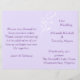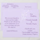Die atemberaubende Hochzeitskollektion bietet Ihnen ein subtiles, aber modernes Design für Ihr Hochzeitsprogramm. Die hellen Lavendel Hochzeitsprogramme zeichnen sich durch einen hellen Lavendel-Hintergrund aus, der in der oberen links Ecke der Frontabdeckung durch einen weißen Zweig-Swirl besticht. Verwenden Sie die vorgefertigte Vorlage, um Ihre Programme so anzupassen, dass alle Details Ihres geplanten Ereignisses hinzugefügt werden. Sie können auch andere Papiersorten und Schriftart und/oder Farben aus der Funktion "Anpassen" auswählen, die hier mit einem Papiertyp mit hohem Gewicht dargestellt sind, der mit dem Karton vergleichbar ist. Die Programme sind auf einem 8,5 x 11-Zoll-Blatt konzipiert, um entlang der Mittellinie zu einem Kartenprogramm zusammengeklappt zu werden