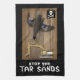 Entenmontage mit geölter, toter Mallardente, Erdbewegungsausrüstung, Schädel und Kreuzknochen. Text mit dem Text "STOP THE TAR SANDS" erscheint ebenfalls. Wehe an Wasservögel, die in einem giftigen Absetzteich in Alberta landen, wo ein extrem zähes Erdöl aus Teersand (auch Ölsand genannt) mit schrecklichen Umweltauswirkungen gewonnen wird. Der Teersand von Alberta besteht aus schwerem Rohöl, das mit Sand, Ton und Bitumen vermischt ist. Die Gewinnung beinhaltet das Verbrennen von Erdgas, um ausreichend Wärme und Dampf zu erzeugen, um das Öl aus dem Sand zu schmelzen. Bis zu fünf Barrel Wasser werden benötigt, um einen Single Öl zu produzieren. Jeden Tag werden Millionen Gallonen Wasser mit Chemikalien wie Arsen, Kupfer, Blei und Zink kontaminiert, um im Grunde Teersandöl (verdünntes Bitumen genannt) vom Sand zu trennen. Aber das Wasser ist nach diesem Prozess so kontaminiert, dass es in toxischen Schlammgruben, so genannten Bergeteichen, gelagert werden muss. Es wird geschätzt, dass täglich 3 Millionen Gallonen kontaminiertes Wasser aus Seen in den Athabasca Fluss Alberta und die umliegende Landschaft strömen. Bitte nein zum Teersand sagen!