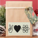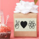 Eine Hand, die in einem "V"-Friedensschild, einem Herz und einem Atheistischen Symbol aufgehängt wurde, Zauber "Friedensatheismus" aus.
