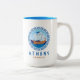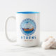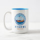 Athen, Griechenland Zwei-Töne-Kaffee-Tasse mit einem Design eines antiken griechischen Schiffes und griechischem Stil Buchstaben. Dieses antike griechische Schiff Design hat den griechischen Schlüssel in einem Kreis-Design mit dem Meer und Himmel. Dieses griechische Design macht diese Tasse zu einem idealen Geschenk für Andenken oder zum Kaffee trinken während Sie in Athen Urlaub machen.