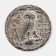 Amphora mit Eule umkreist von einem Kranz von Oliven-Blätter.