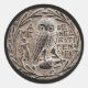 Amphora mit Eule umkreist von einem Kranz von Oliven-Blätter.