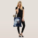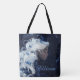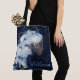 Tauche ein in eine traumhafte Märchenwelt mit dieser atemberaubenden personalisierten Tasche, die eine ätherische Frau zeigt, umgeben von fließendem weißen Haar und zarten blauen Federn. Vor einem tiefen, sternenklaren Hintergrund vereint dieses zauberhafte Design Eleganz und Fantasie – perfekt für Bücherliebhaber, Träumer und alle, die skurrile Kunst lieben.