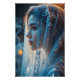 Ein nah-up-Fantasieportrait einer ruhigen, eleganten jungen Frau im Profil gegenüber verlassen, beleuchtet durch doppeltes filmisches Licht - von unten leuchtendes warmes Licht und von oben herab cooles Cyan-Licht. Sie trägt einen halbtransparenten, leuchtend blauen Schleier, bestickt mit zarten, funkelnden Details. Feiner Glitzer umgibt sie, treibt durch sanft geschwungenen Rauch und steigert die mystische Atmosphäre. Die dunkle, moody Kulisse mit leuchtenden Membern verleiht dem Ganzen ein zauberhaftes Ambiente. Ausgerendert in hyperrealistischen Details mit scharfen Gesichtstexturen, die eine ruhige, aber bezaubernde und kraftvolle Präsenz.