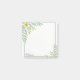 Verleihen Sie Ihrem Schreibtisch einen Hauch von verfeinerter Eleganz mit diesen personalisierten Notizzetteln mit floraler Umrandung. Mit einer zarten Anordnung aus weichen grünen Ranken und einer zierlichen gelben Blüte, die ein knackig weißes Zentrum umrahmt, bieten diese Notizen eine saubere, anspruchsvolle Ästhetik. Die untere Ecke ist mit Ihrem Namen in einer dezenten, modernen Schriftart angepasst, was sie perfekt für professionelle Korrespondenz oder als persönliche Note für Ihr Homeoffice macht.