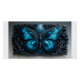 Ein atemberaubendes Kunstwerk aus der Keramik, das als detaillierte Skulptur, aufwändige Relieffliese oder exquisit gemalte Töpferform präsentiert wird. Das zentrale Subjekt ist ein großer, mystischer Schmetterling mit weiten Flügeln, die in tiefer Blues, Schwarz und leuchtenden Farbtönen schimmern. Seine komplizierten Muster werden mit feinen, spitzen Linien, Sgraffito oder Mishima Inlay Techniken definiert, während kristalline, rieszierende und durchsichtige Glasien ein auffallendes biolumineszentes Glühen erzeugen. Der skulptierte Körper ist mit naturalistischer Segmentierung detailliert und bringt dem Wesen eine lebendige Präsenz. Um den Schmetterling herum entsteht ein dunkler, bezaubernder Wald in geringer Relief, mit Bäumen und Blattwerk aus texturiertem Ton, fertig mit matten Glasien aus tiefblau, grau und schwarz. Die subtile Glasblende und die Oberflächenstruktur erinnern an eine ätherische, scheue Atmosphäre, die das dramatische Zusammenspiel von Licht und Schatten verstärkt. Das Stück ist sowohl bezaubernd als auch tief greifend, eine meisterhafte Verschmelzung von skulpturalen Details, Glaskunst und erzählerischer Tiefe.