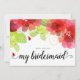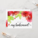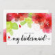 Ätherische rote Blume und handgeschriebene Kalligraphie-Frühjahrsheirat "Werden Sie meine Brautjungfrau?"-Karte. Ein hübsches Design, das rote und rosa Blume mit grünen Blätter zeigt.