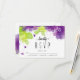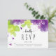Ätherische violette Blumen Blumenfrühling Hochzeit RSVP Karte. Der obere Teil ist mit einem Blumenstrauß bedeckt, der mit grünen Blätter geschmückt ist.
