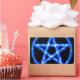 Dieses Pentagramm brennt mit einer blauen, spirituellen ätherischen Flamme und ist ziemlich verblüffend in seiner Sichtbarkeit. Es zeichnet sich deutlich vor dem runden schwarzen Hintergrund ab. Einfach aber effektiv.