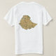 Ein editierbarer Titel und Slogan begleiten das gelbe Motiv in einem blauen Kreis über grüne, gelbe und rote Bänder der äthiopischen Fahne auf der Vorderseite dieses T - Shirt. Die Rückseite zeigt eine detaillierte Karte von Äthiopien.