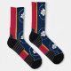 The socks proudly display the official Mississippi state flag adopted in 2020, showcasing a beautifully detailed magnolia blossom—a symbol of hospitality, strength, and renewal—centered on a bold blue background. Encircling the blossom are twenty white stars, representing Mississippi’s entry as the 20th state in the Union, and one golden star that honors the Native American heritage of the region. With vivid red, blue, and gold elements, the flag design transforms these athletic socks into a wearable celebration of identity and progress.