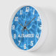 Foto von Licht, das auf dem Boden eines Schwimmbeckens spielt, digital getönt hellblau. Das Foto des Aqua-Blue-Pools ist kein Set als Vorlage, aber man kann dieses Foto durch ein eigenes ersetzen. Der Name und die Uhrennummer Typografie zeichnen sich durch einen blockierten sportlichen Schriftart in Weiß aus. Es gibt mehrere Zahlenstile in meinem Geschäft, die Ihnen helfen, Ihr Design anzupassen. Erstellen Sie Ihren eigenen personalisierten Text und erstellen Sie Ihr eigenes Wanduhr-Geschenk für einen Schwimmer oder Taucher.