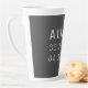 Latte Tasse mit Atlanta Georgia Breiten- und Längenkarte koordiniert in hellgrauem, Not leidendem Schriftart auf dunkelgrauem Hintergrund.