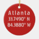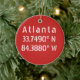 Breiten- und Längenkoordinaten für Atlanta, GA im modernen, weißen industriellen Schriftart auf rotem Hintergrund. Anpassen mit personalisiertem Namen/Meldung auf der Rückseite