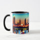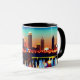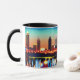 Kaffee-Tasse in einer Abbildung der Skyline von Atlanta Georgia nachts, unter einem Sternenhimmel, mit brillant reflektierten Lichtern