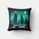 Kissen in einem stilisierten Poster von Atlanta, das die ikonische Skyline der Stadt unter einem strahlenden Nachthimmel mit einem kühlen, retrofuturistischen Ambiente zeigt. Das aquamarine und gelbe Farbschema und die leuchtende Kuppel im Vordergrund sorgen für eine elegante, moderne Drehung.